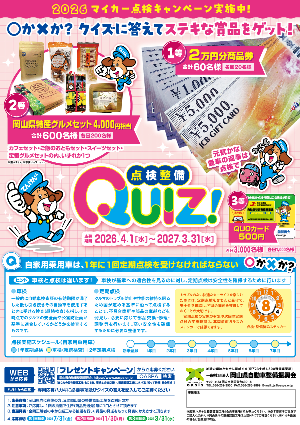 クイズに答えて応募しよう!「マイカー点検キャンペーン」